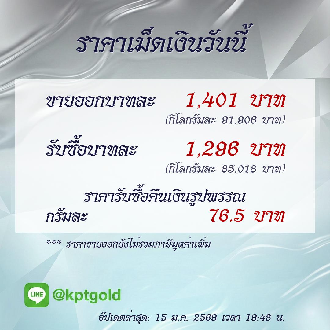 ราคาเงินเม็ดในวันที่ 16 Jan 2569 19:48 น. |